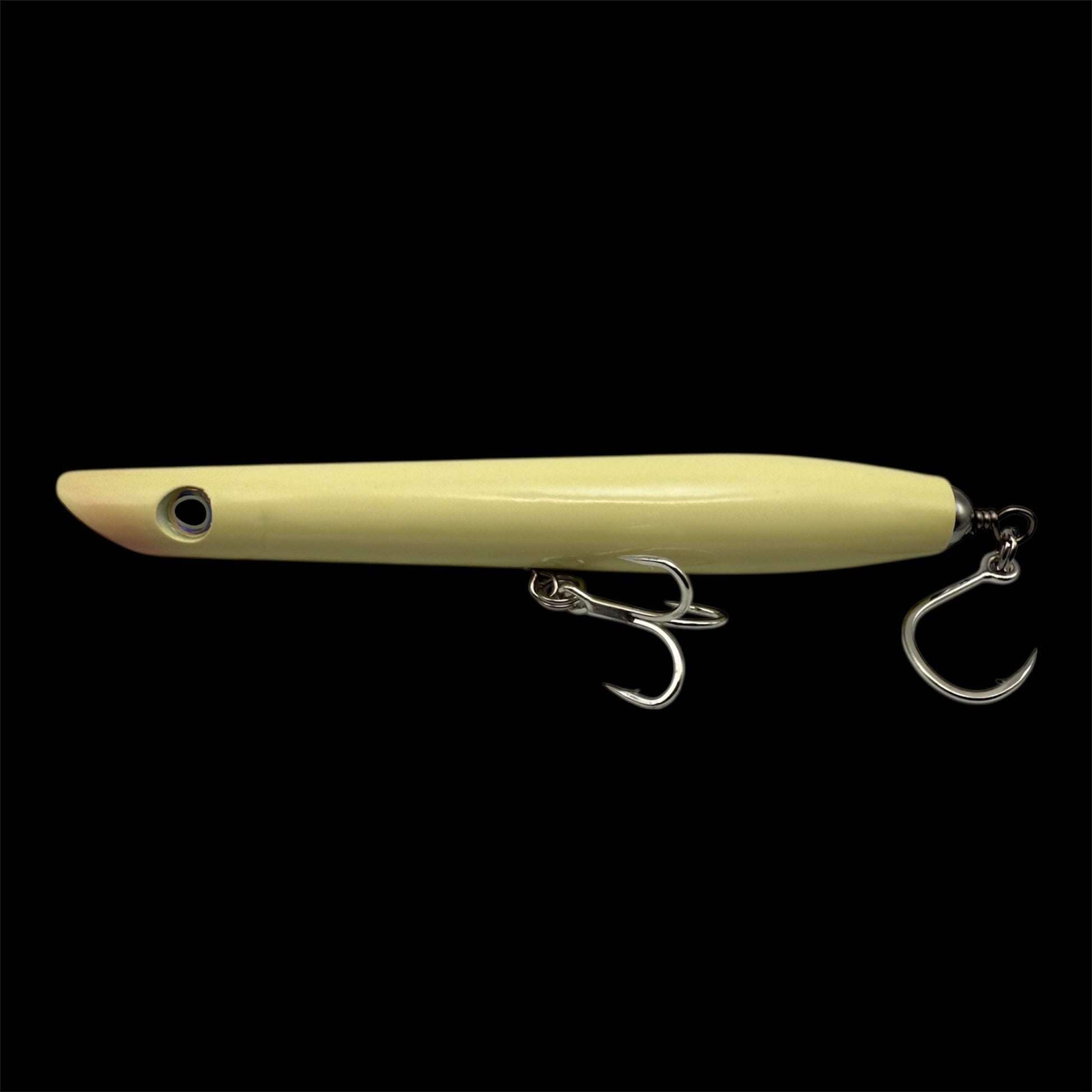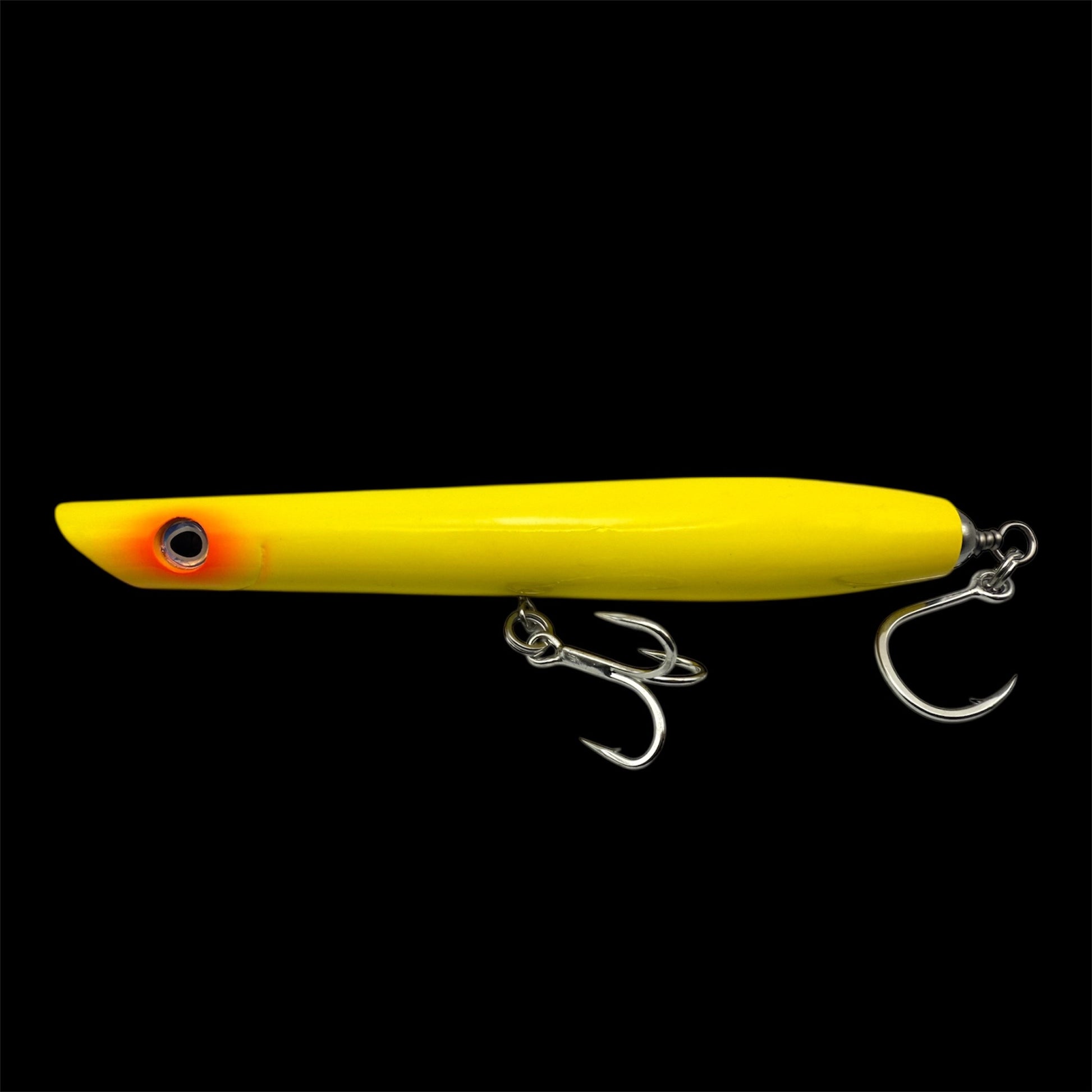 Description: This wooden topwater is crafted from premium birch wood and entices gamefish with lifelike precision. Armed with VMC Hooks for unbeatable hooksets, it floats on the water's surface, making it irresistible to a range of species. Built tough with thru-wired construction, it's ready for epic battles. With perfect dimensions for precision casting, this lure is the choice of both seasoned anglers and beginners. We recommend fishing it side to side in a "walk the dog" kind of action. But it also works well popped and paused. Elevate your angling game, create unforgettable memories, and make your mark in the fishing world.