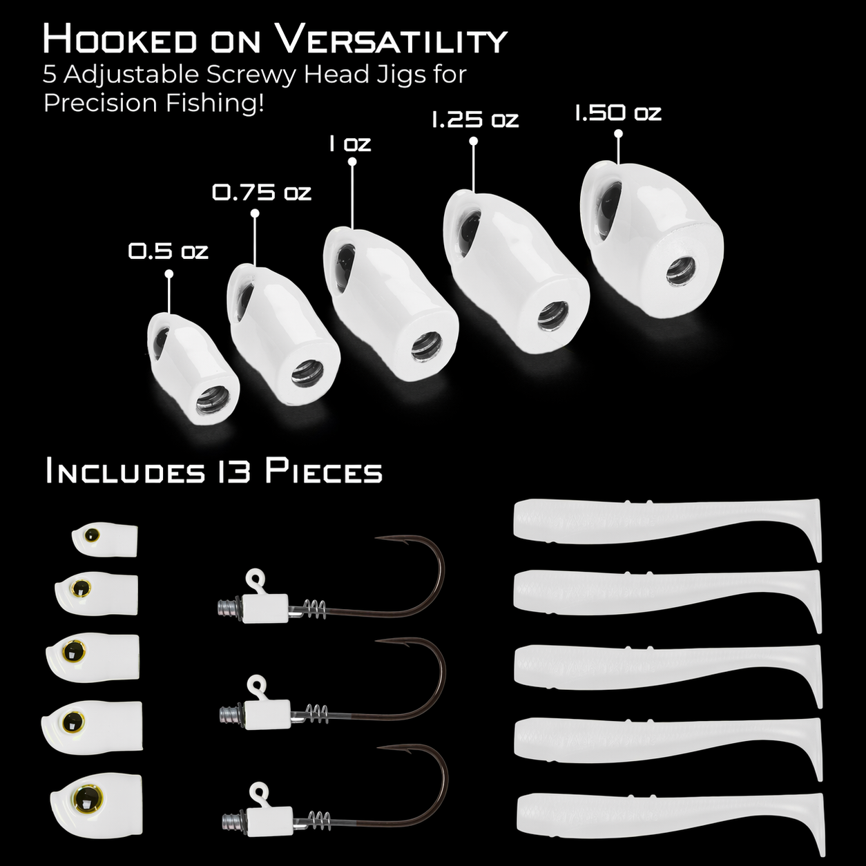 The Screwy Head Jig allows you to change the weight, color, or size of your jig head in seconds—without cutting your line or re-rigging your soft plastic.